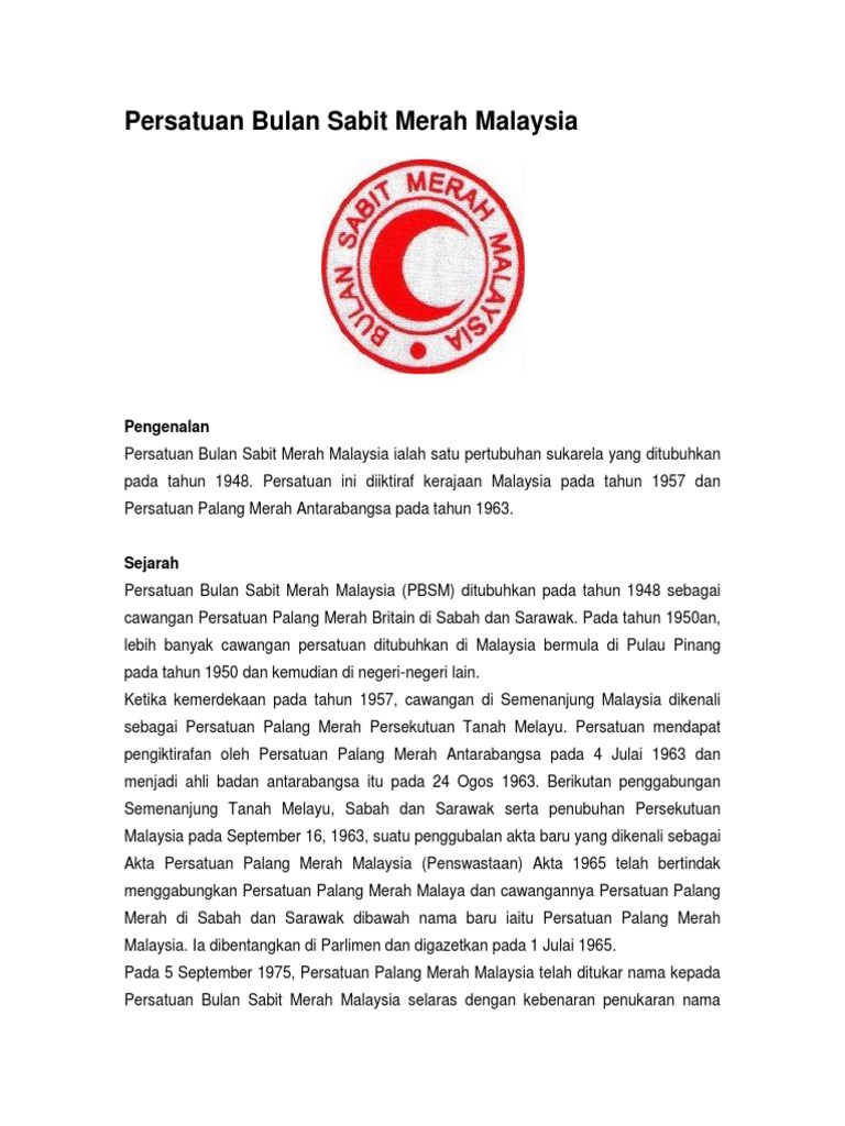 Sejarah Ringkas Bulan Sabit Merah Malaysia Pdf